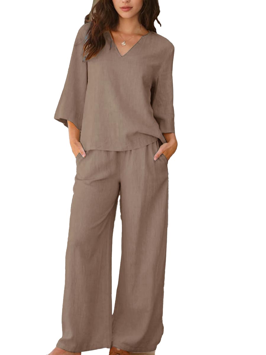 Comfortable two-piece suit for women, made of comfortable cotton and linen fabric, lightweight and breathable, allowing you to move freely. This two-piece clothing combines fashion and comfort, showing your confidence and elegance, and is a must-have item for all seasons.